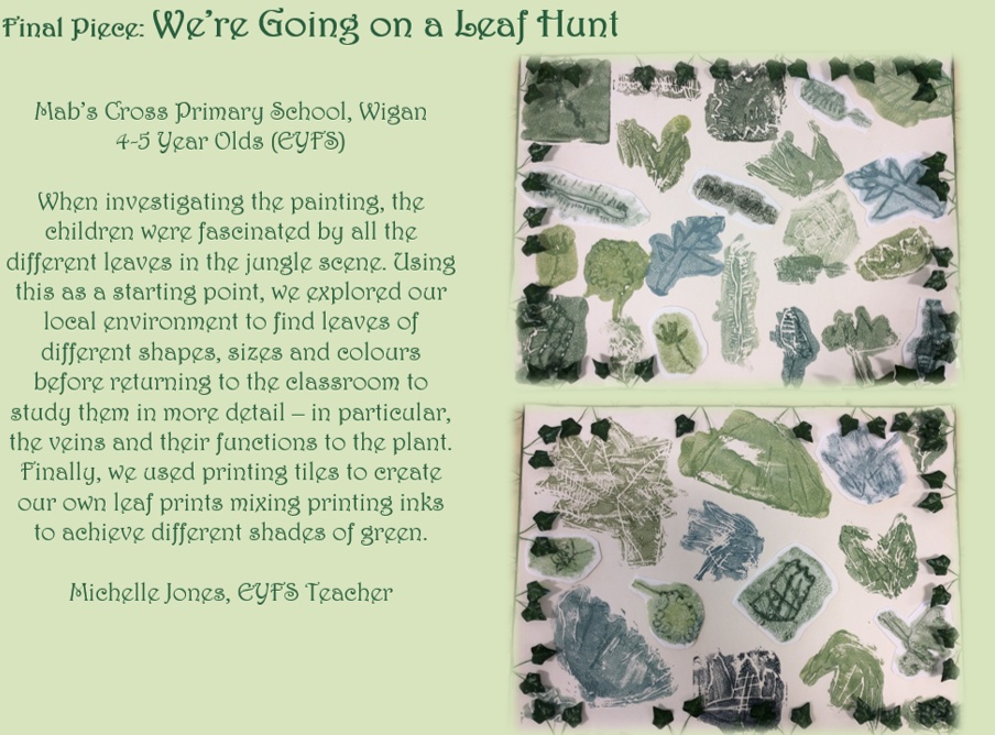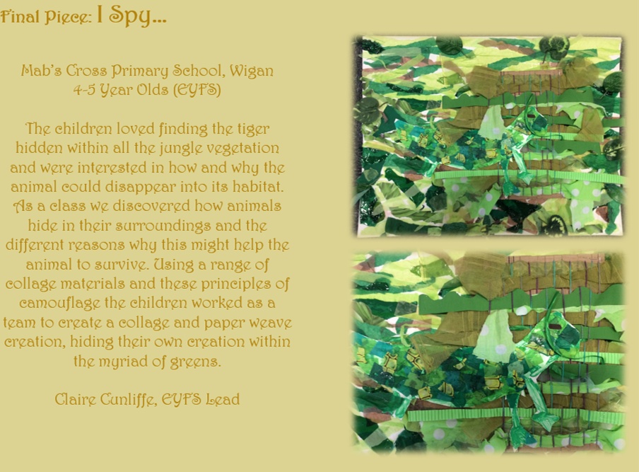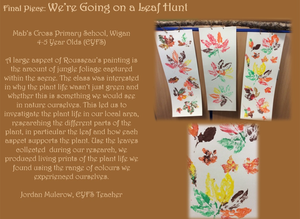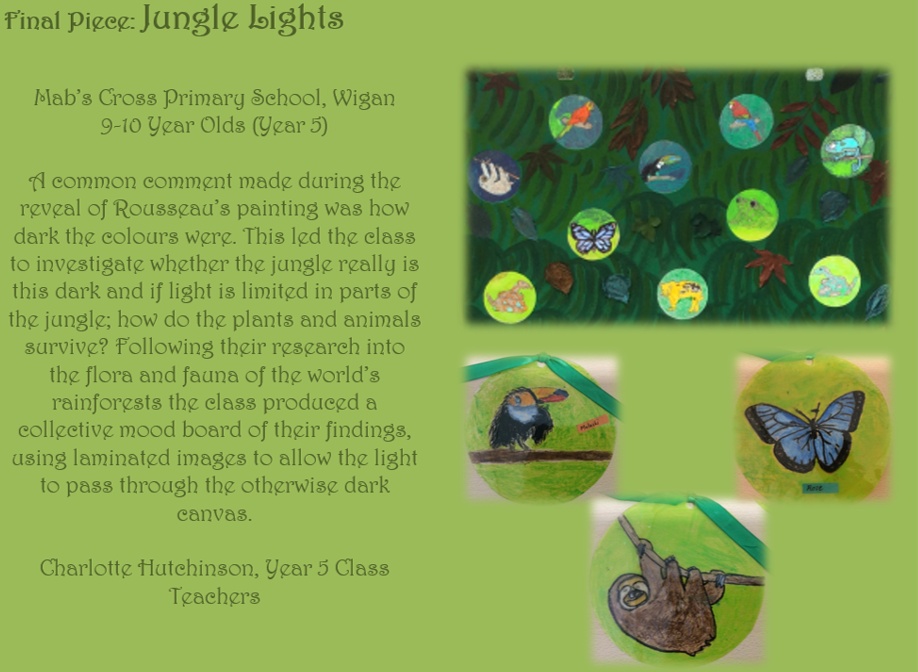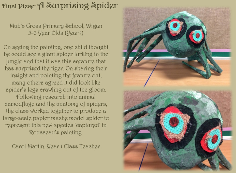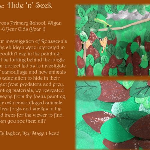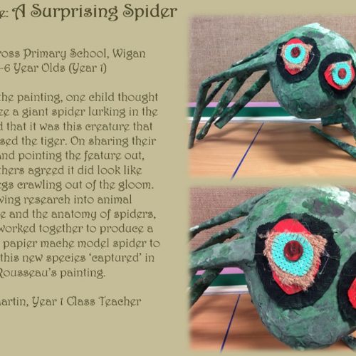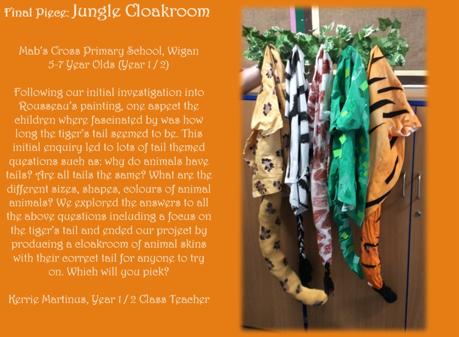 The Take One Picture project this year became a fixed aspect of our art and design curriculum. The project allows the children to take the lead in their own learning and develop their imagination and ideas. In this project, the whole school worked on creating artwork inspired by Henri Rousseau's 1891 painting 'Surprised!' As part of this project, the school elected to complete a 'Tiger Dance' fundraising event to support the conservation efforts of tigers in the wild in conjunction with Chester Zoo. Once the artwork was completed, all final pieces were exhibited in the local children's library for parents and members of the public to visit.