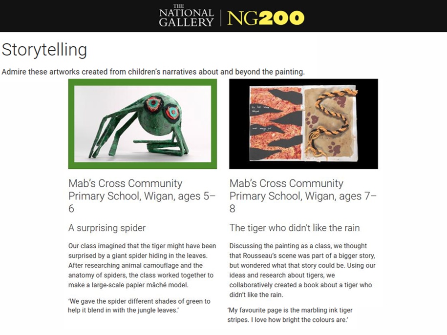 For the fifth consecutive year, artwork by the school was shortlisted and selected for display as part of the gallery's Festival of Art in celebration of its second centenary year. One of the projects 'The Tiger Who Didn't Like The Rain' continues to have a legacy after the exhibition, being used as part of the gallery's long term storytelling resources for other schools to access.