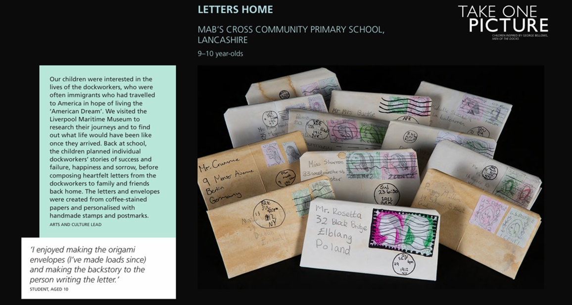 This was our first year taking part in Take One Picture. As an introductory year, one class trialled the process, producing artwork based on the 1912 painting 'Men of the Docks' by George Bellows. This artwork was chosen as part of the exhibition shown virtually in Summer 2020.